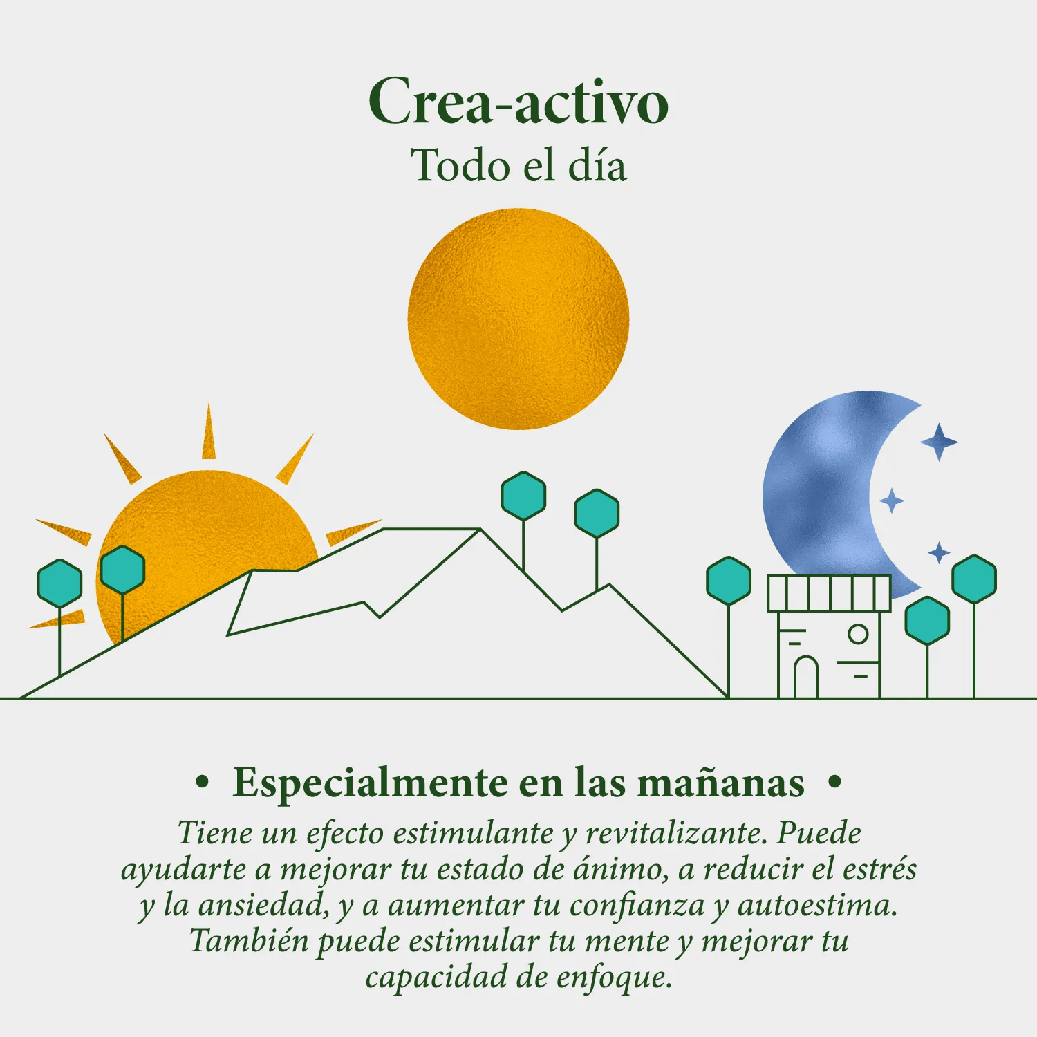 Espiritual: Los ingredientes de Creactiva te ayudan a liberar bloqueos emocionales y a abrirte a nuevas experiencias. Equilibrar las emociones y promover la armonía. La albahaca puede ayudarte a fortalecer tu intuición, a alejar las energías negativas y a encontrar un propósito en tu vida.